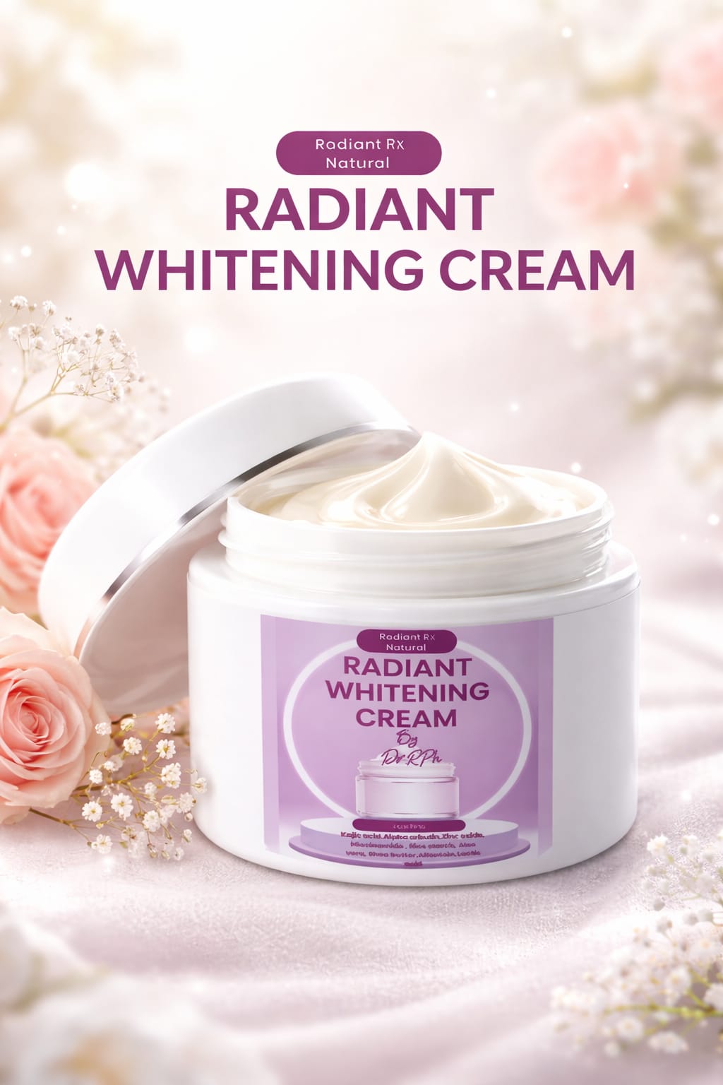Radiant Whitening Cream is a pharmacist-formulated blend that combines clinically proven brightening agents and soothing botanicals.